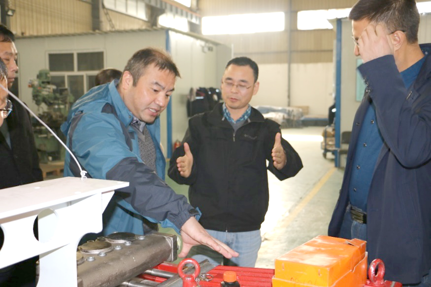 陕西省太合智能钻探有限公司董事长王义红对威廉希尔官网 领导和专家的到来表示热烈欢迎。他首先详细介绍了企业的发展历程、科研成果以及发展愿景。他表示太合智能公司将不忘初心,砥砺前行。嗣后,专家们参观了目前国内扭矩最大的ZYL-17000D型矿用履带式全液压定向钻机、YSX15矿用有线随钻测量装置、YSX16矿用无线随钻测量系统、随钻测量钻具以及金刚石复合片钻头等系列高新产品,还就细节技术问题驻足讨论。