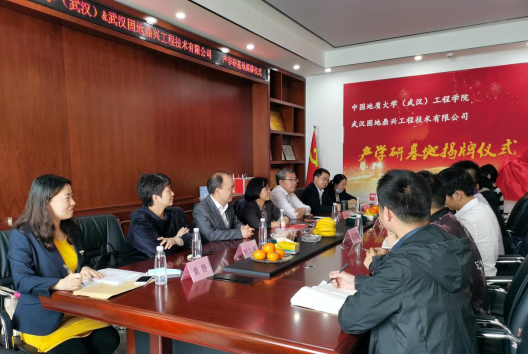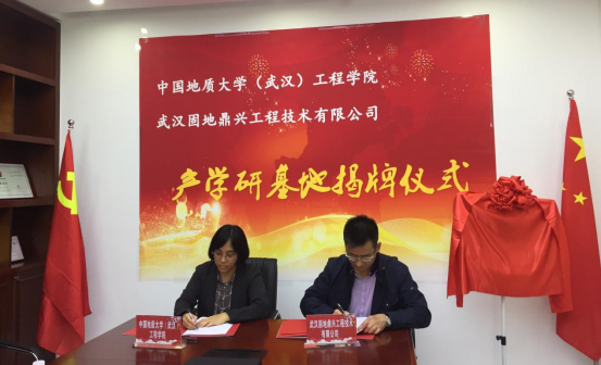 (通讯员:黄静)2021年4月27日,中国地质大学(武汉)威廉希尔官网 与校友企业武汉固地鼎兴工程技术有限公司签订《联合共建产学研基地合作协议》,威廉希尔官网 党委书记李红丽和武汉固地鼎兴工程技术有限公司总经理汪旭涛出席协议签订仪式,并共同为合作基地揭牌。武汉固地鼎兴工程技术有限公司副总经理兼总工程师胡凯锋、威廉希尔官网 副院长王亮清教授、工岩系主任章广成教授、时红莲副教授、李长冬教授、谢妮副教授、威廉希尔官网 科研秘书黄静共同见证了签约仪式。