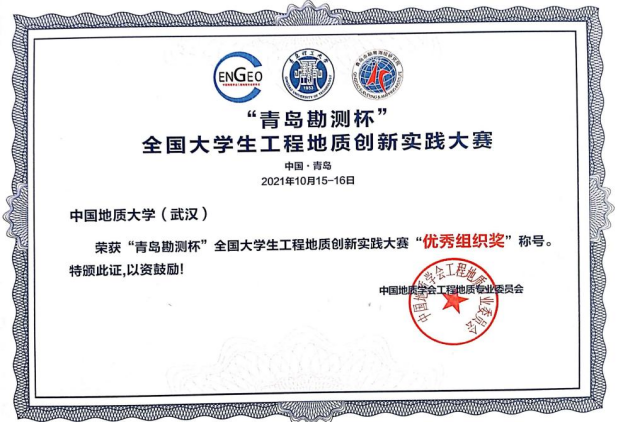 (通讯员:葛云峰)2021年10月15日,在“青岛勘测杯”全国大学生工程地质创新实践大赛中,威廉希尔官网 学子取得一、二、三等奖各1项,学校荣获“优秀组织奖”的优异成绩。