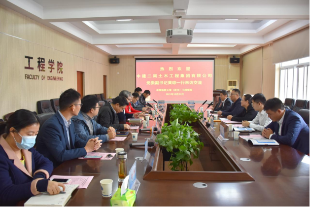 王亮清副院长对中建二局土木工程集团有限公司党委副书记黄琼一行的来访表示热烈欢迎。在一同观看中国地质大学(武汉)宣传片后,王亮清副院长介绍了威廉希尔官网 学科建设、科技成果、科研平台、人才培养、社会服务等方面情况。