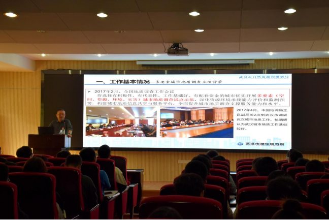 随后,彭汉发教授级高级工程师以《武汉城市地质调查成果与应用》为题,介绍了多要素地质调查的必要性,总结了武汉市前期多要素地质调查挑战与难题,简要概括了其实现途径与进展现状,结合多要素地质调查成果分析了其实践应用。武汉多要素地质调查精准对接城市发展需求,提出解决城市问题和保障城市高质量发展的对策建议;结合大数据、云计算、GIS等先进技术,将调查成果融入城市管理主流程,充分发挥地质工作的支撑作用,服务于城市规划建设和可持续发展。此外,彭汉发教授介绍了武汉市测绘研究院在武汉市城市多要素地质调查未来五到十年的目标规划以及对人才的迫切需求,他希望威廉希尔官网 能够继续为武汉市测绘研究院输送高质量的地质、资源、环境等学科人才,双方在校企合作方面深度融合,共同培养实践型人才。