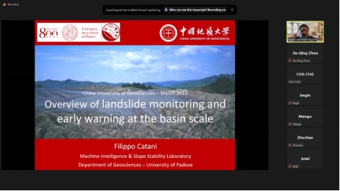 (通讯员:陈文强 叶阳)3月20日至22日,应威廉希尔官网 唐辉明教授和李长冬教授的邀请,意大利帕多瓦大学Filippo Catani教授应邀作客2023年度第1-3期“重大地质灾害预测与防控学科”111创新引智基地系列学术讲座。系列短课采用Zoom在线会议形式,由叶阳特任教授主持,李长冬教授、周佳庆特任教授、张峰特任教授、邹宗兴副研究员等共计40余名师生参加了本次在线短课。