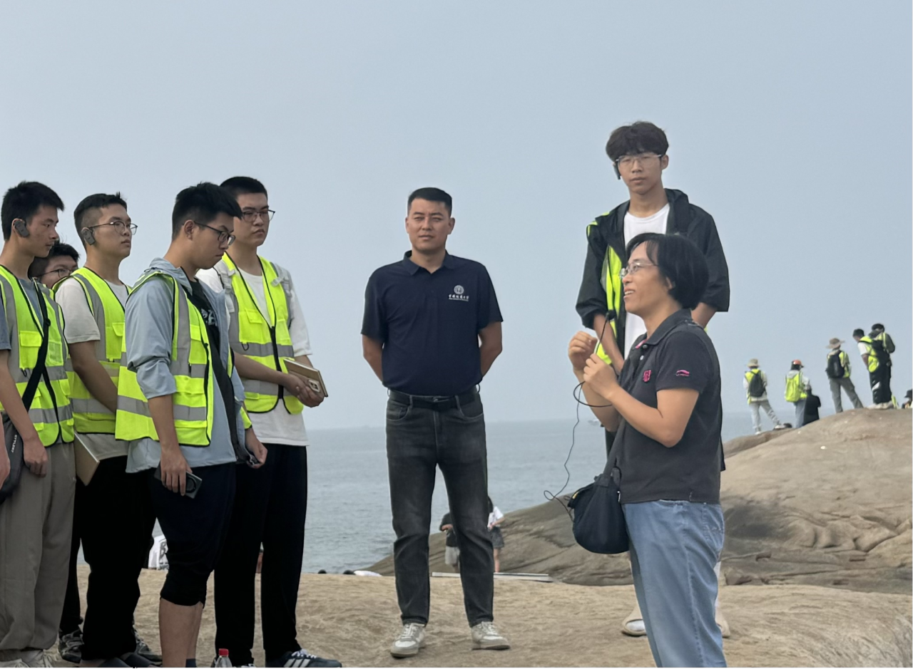 7日上午,李红丽一行前往老虎石路线参与野外实习,与同学们一起学习授课内容,并针对具体的地质现象与同学们进行互动交流。李红丽对带队教师的实习教学内容以及同学们野外学习态度给予高度肯定。