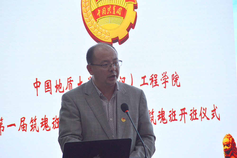 本次活动在嘹亮的团歌合唱声中拉开序幕,江广长首先围绕团中央、团省委、学校再到威廉希尔官网 启动青年马克思主义者培养工程的历史展开讲话,对筑魂班做了具体介绍。随后他为在座的同学介绍了威廉希尔官网 办学以来涌现出的优秀校友,希望以此来激励工程学子。他表示,青年一代工程人格局应更高,视野应更开阔,要不忘初心,砥砺前行,不断坚定自己的信念,提升思想政治境界,争取早日成为一名合格的马克思主义者。